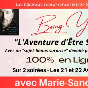 2025-04-21 19:00:002025-04-22 21:30:00Europe/ParisClasse BEING YOU L'aventure d'Être Soi avec sujet-bonus dévoilé prochainement!Reservations on : https://www.billetweb.fr/classe-being-you-laventure-d-tre-soi-avec-sujet-bonus