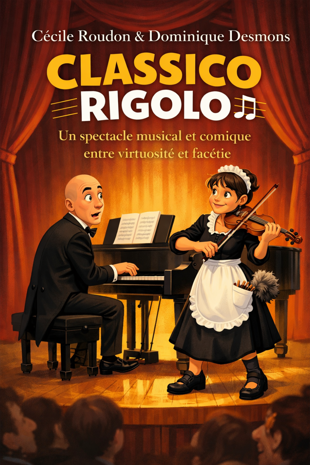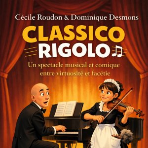 Dans Classico Rigolo, la rigueur du piano classique de Dominique Desmons se retrouve joyeusement bousculée par l’énergie espiègle du violon de Cécile Roudon.
