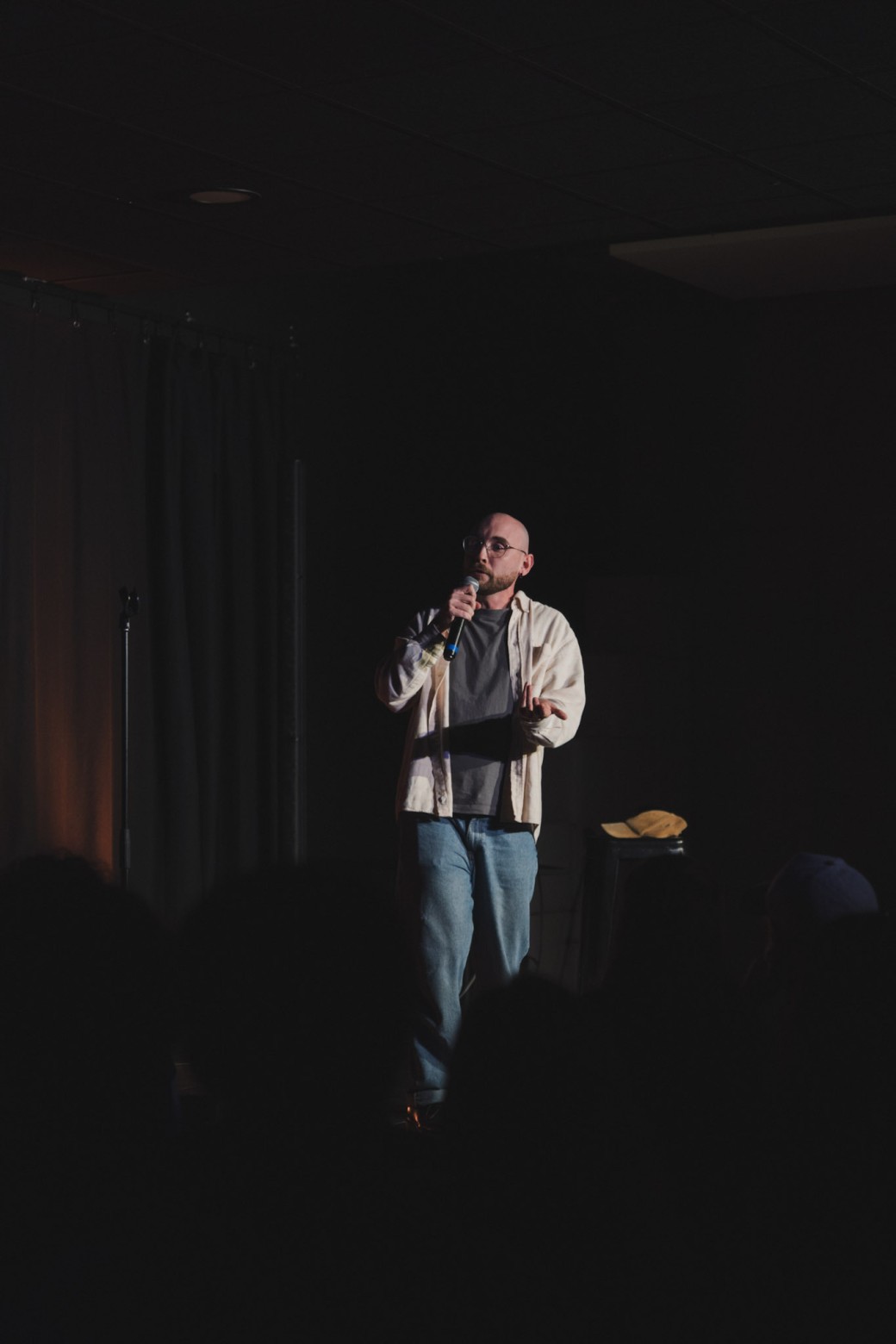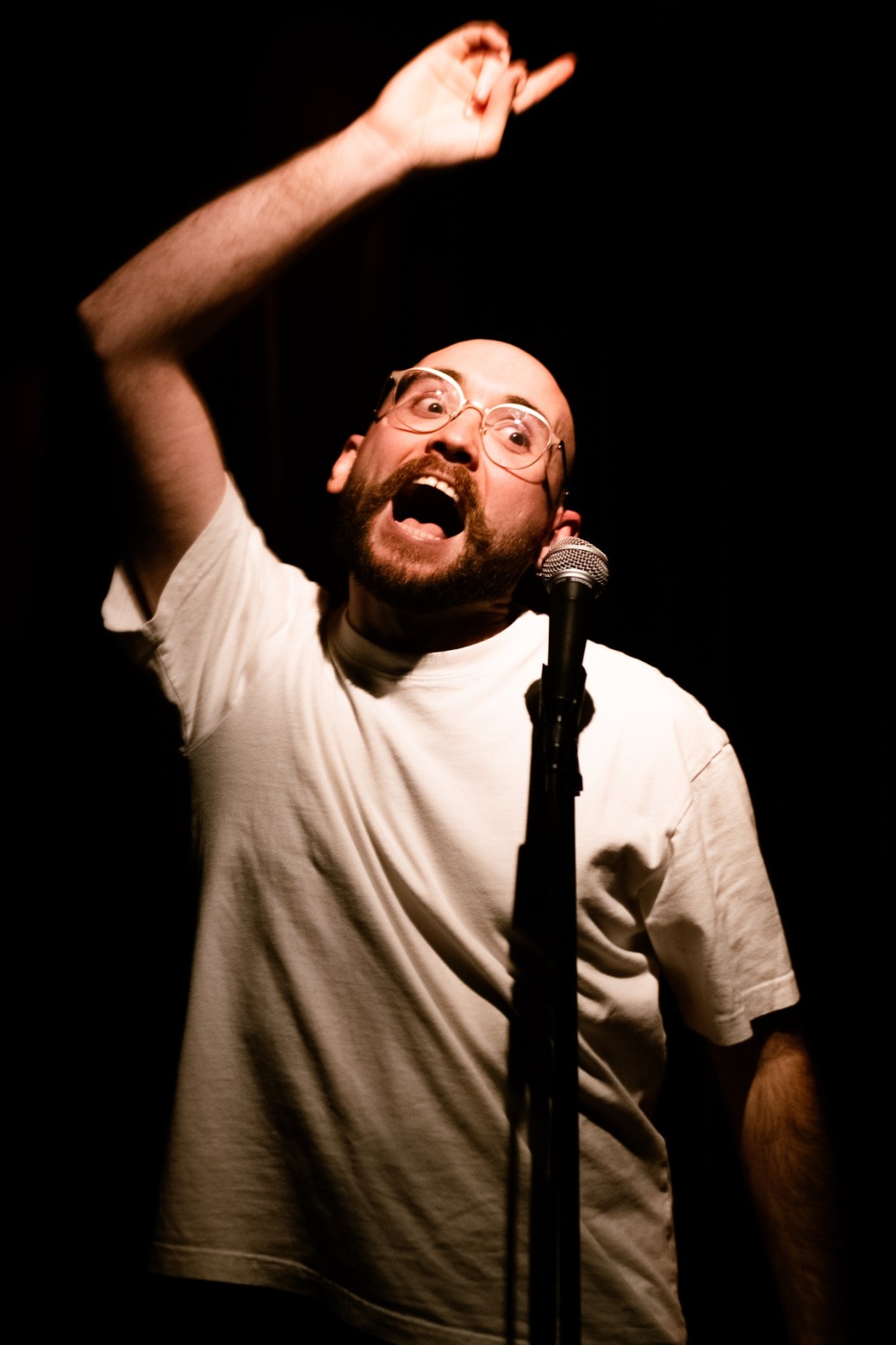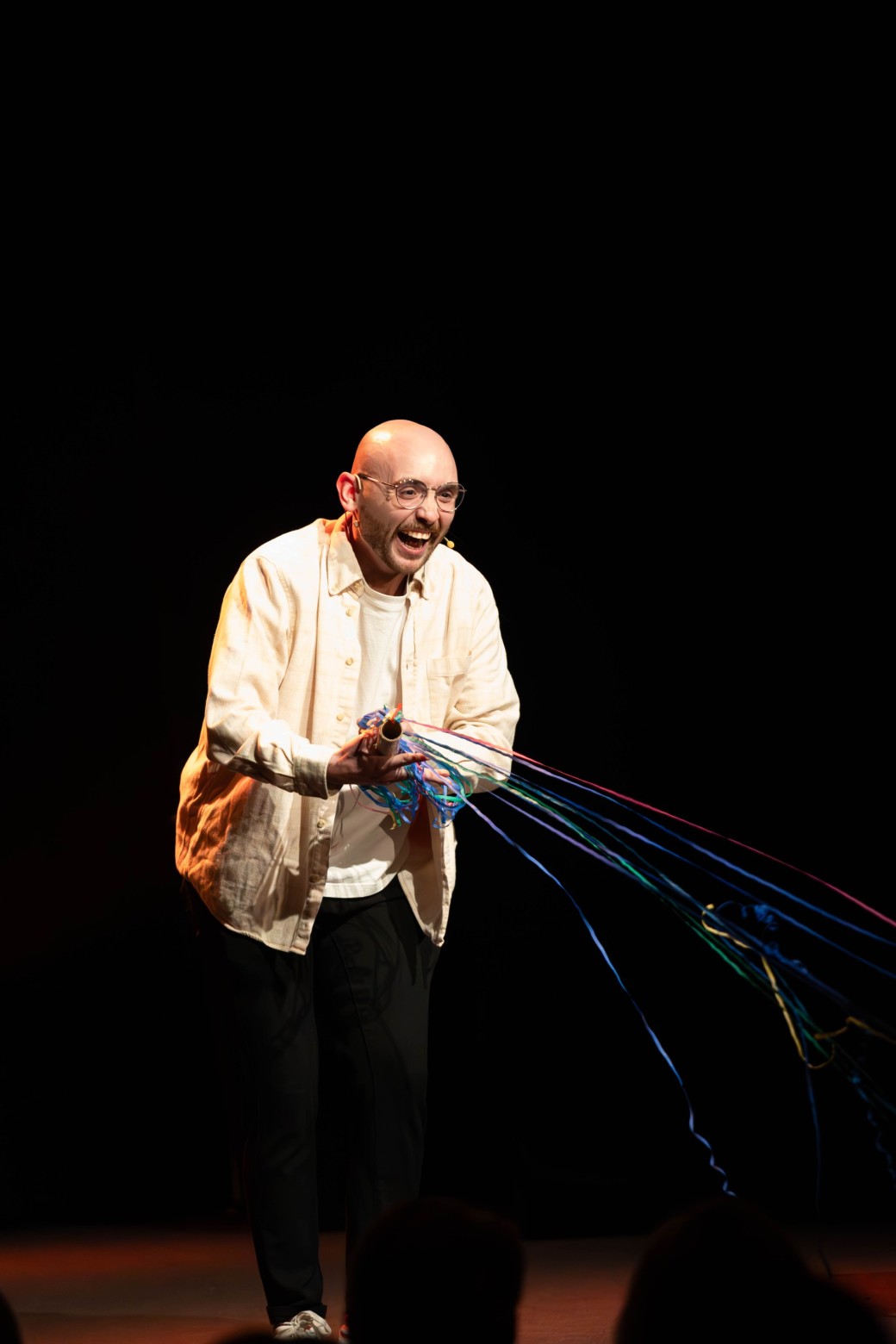 Stand-up absurde, réflexions surréalistes, personnages et chansons : entrez dans un monde… où tout fini en serpentins.
