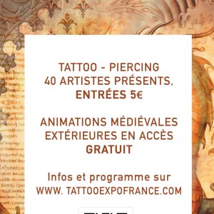 Pour cette première édition le prix de l'entrée est à 5€ par jour en ligne ou sur place dans la limite des places disponibles. Seules les preventes garantissent un accès. Infos et programme sur www.tattooexpofrance.com