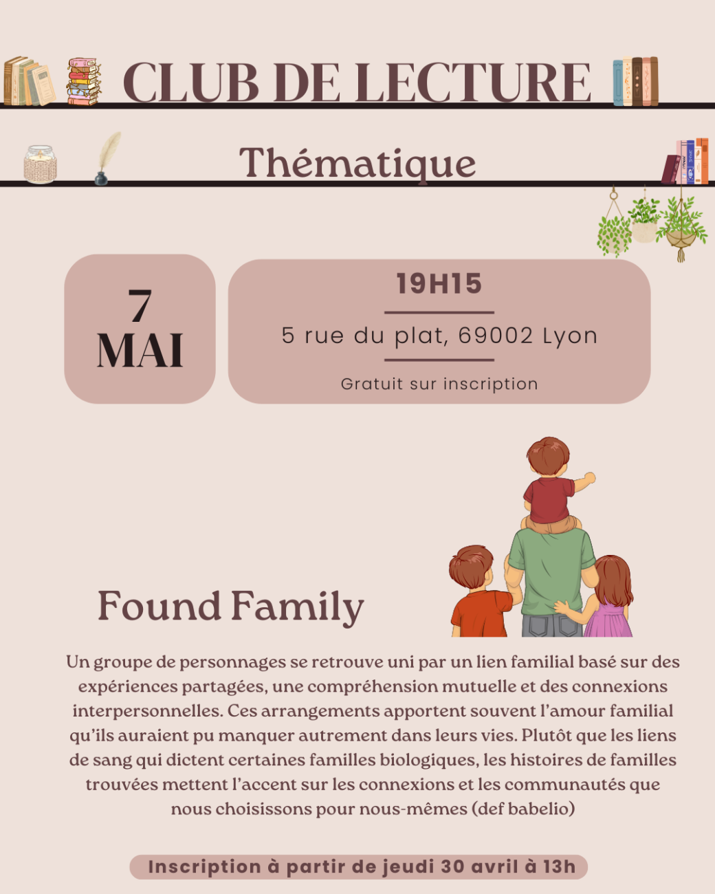 Reservations on : https://www.billetweb.fr/club-de-lecture-found-family --