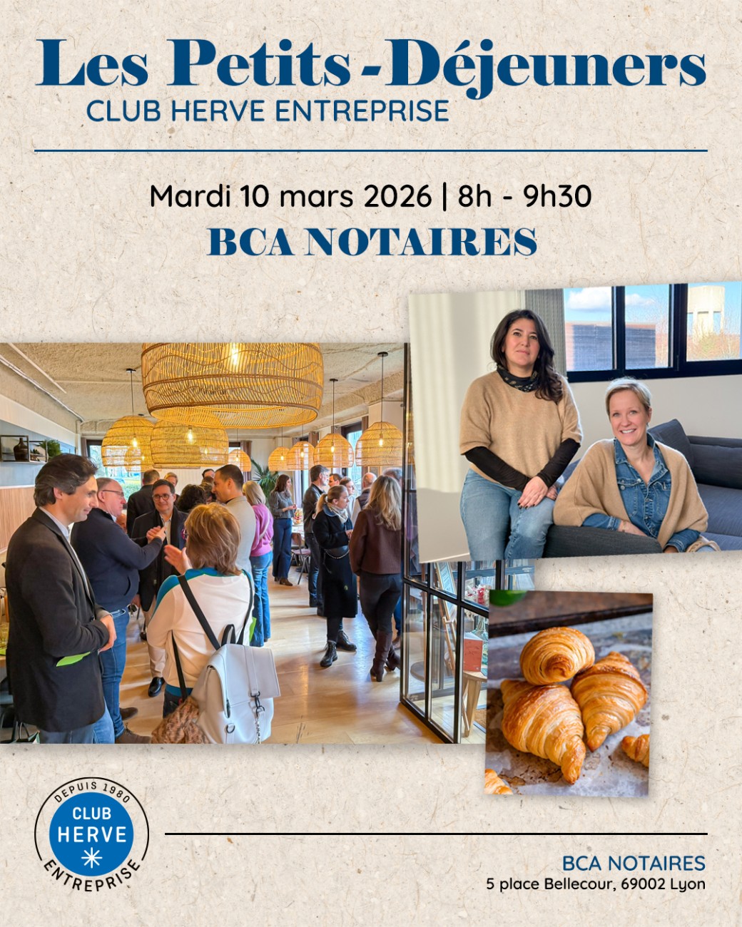 Le Club HERVE Entreprise propose des petits-déjeuners dédiés aux dirigeants et décideurs souhaitant se retrouver dans un cadre privilégié. Organisés sous la coprésidence de Sonia BEJAOUI et Carole DEPLECHIN, ces rendez-vous réguliers reflètent pleinement l’ADN du Club :