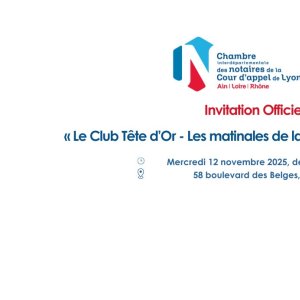 2025-11-12 07:30:002025-11-12 09:30:00Europe/ParisClub Tête d'Or - Les matinales de la Chambre des notairesReservations on : https://www.billetweb.fr/club-tete-dor-les-matinales-de-la-chambre-des-notaires