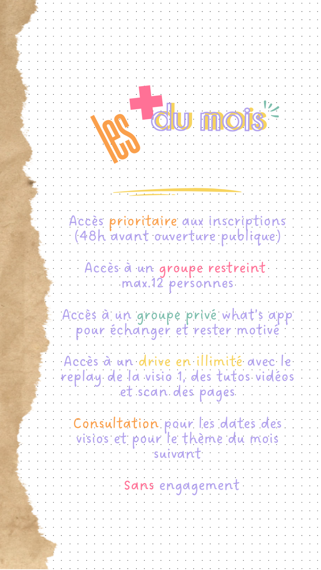 Un drive dans lequel on retrouve le scan des pages du mois pour avancer à votre rythme, le replay du premier live si vous n’avez pas pu y assister et d’autres bonus selon vos besoins du moment.