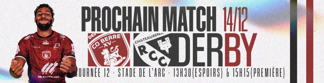 Venez nombreux soutenir nos équipes lors de ce match à domicile ! L'occasion parfaite de découvrir ou redécouvrir l'ambiance unique du rugby berrois !