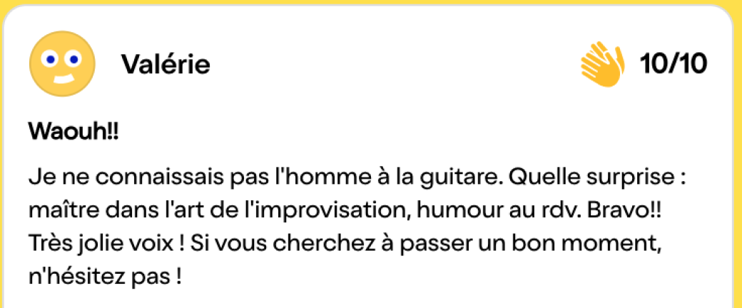Vos anecdotes et les interractions que vous aurez avec lui, créeront peut être une chanson improvisée.