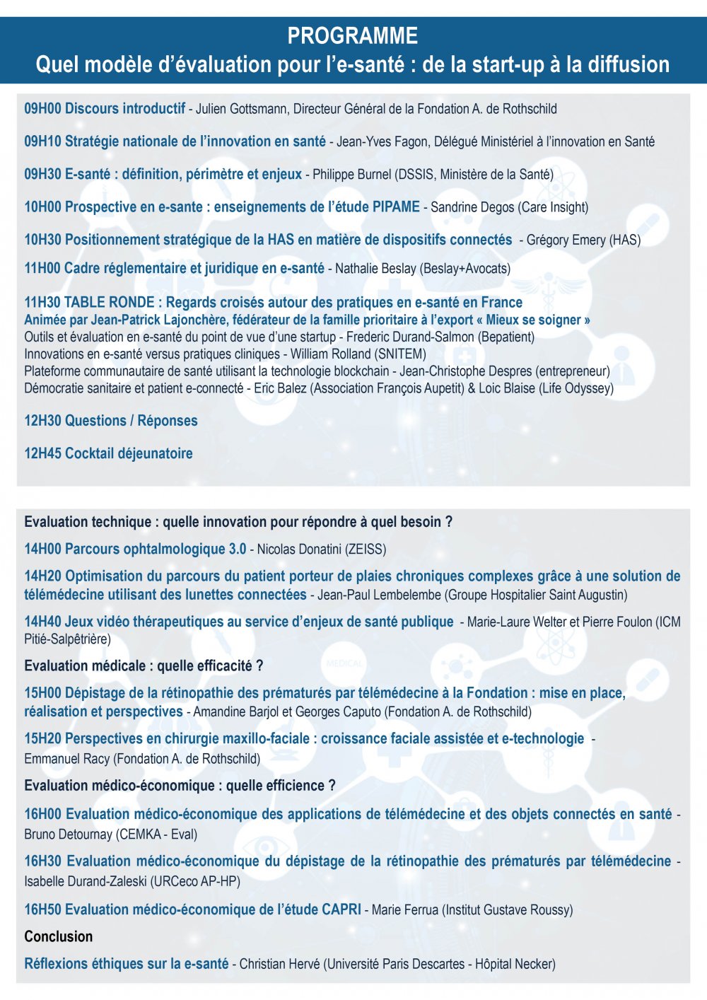 Après l’impact des innovations dans le parcours de santé du patient en ophtalmologie et neurosciences, le Centre d’Etudes et d’Innovations en Santé (CEIS) de la Fondation A. de Rothschild organisera, le 16 mars 2017, un deuxième colloque sur le thème "Quel modèle d'évaluation pour l'e-santé : de la start-up à la diffusion".