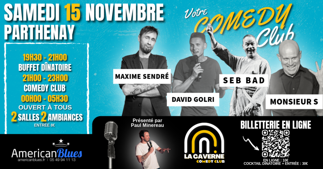 Préparez-vous à vivre une soirée exceptionnelle sous le signe de l’humour, de la fête et de la bonne humeur ! La Caverne Comedy Club revient à Parthenay pour une grande soirée, et vous êtes tous invités !