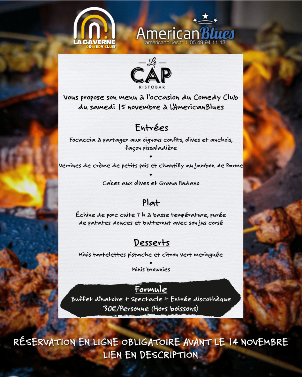 Formule complète Cocktail + Spectacle + Soirée : 30€