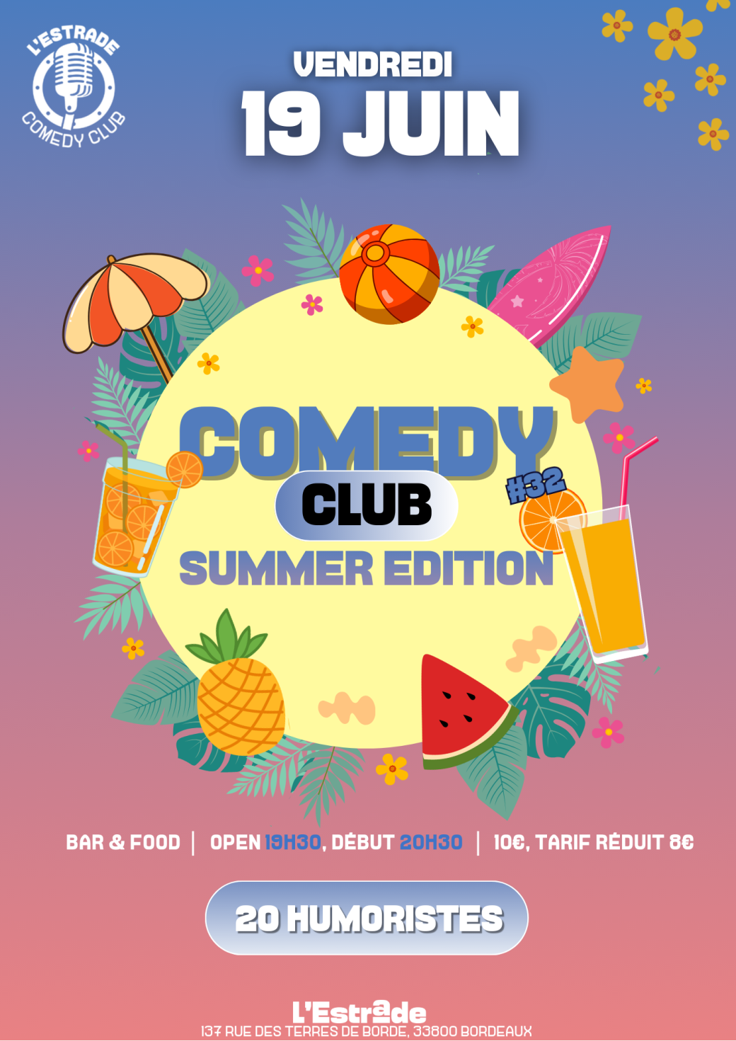 Retrouvez 30 humoristes bordelais pour une édition estivale pleine d’énergie, d’impro et de punchlines ensoleillées !