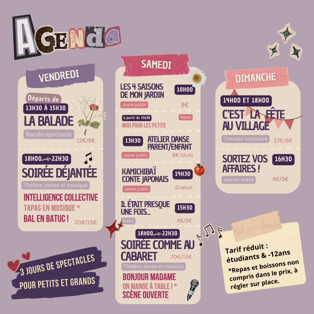Né du désir de créer un moment de rencontre et de découverte, ce festival mettra à l’honneur des artistes émergents locaux, des compagnies régionales de théâtre et d’arts de rue, ainsi que des amateurs passionnés qui font vivre la scène artistique du territoire. Un rendez-vous pensé pour favoriser les rencontres, soutenir la création et faire vivre la culture au plus près des habitants.