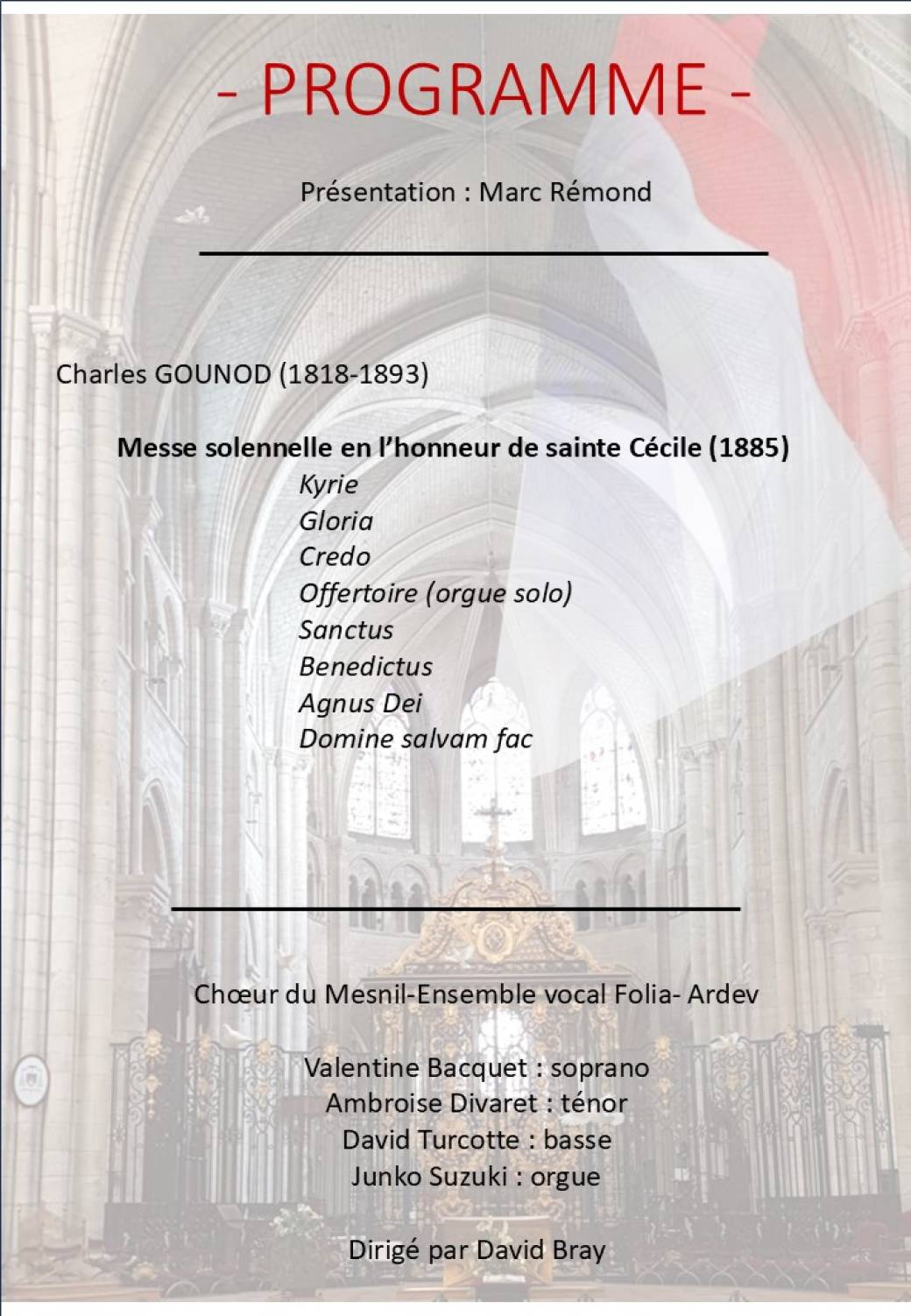 Pour rappeler ce moment, l'œuvre "la Messe de Sainte-Cécile" sera présentée le jour anniversaire de sa création le 22 novembre, il y a 170 ans. Ce jour est celui de la fête de Sainte Cécile, patronne de la musique et des musiciens et aussi l’anniversaire de la naissance de Charles de Gaulle.