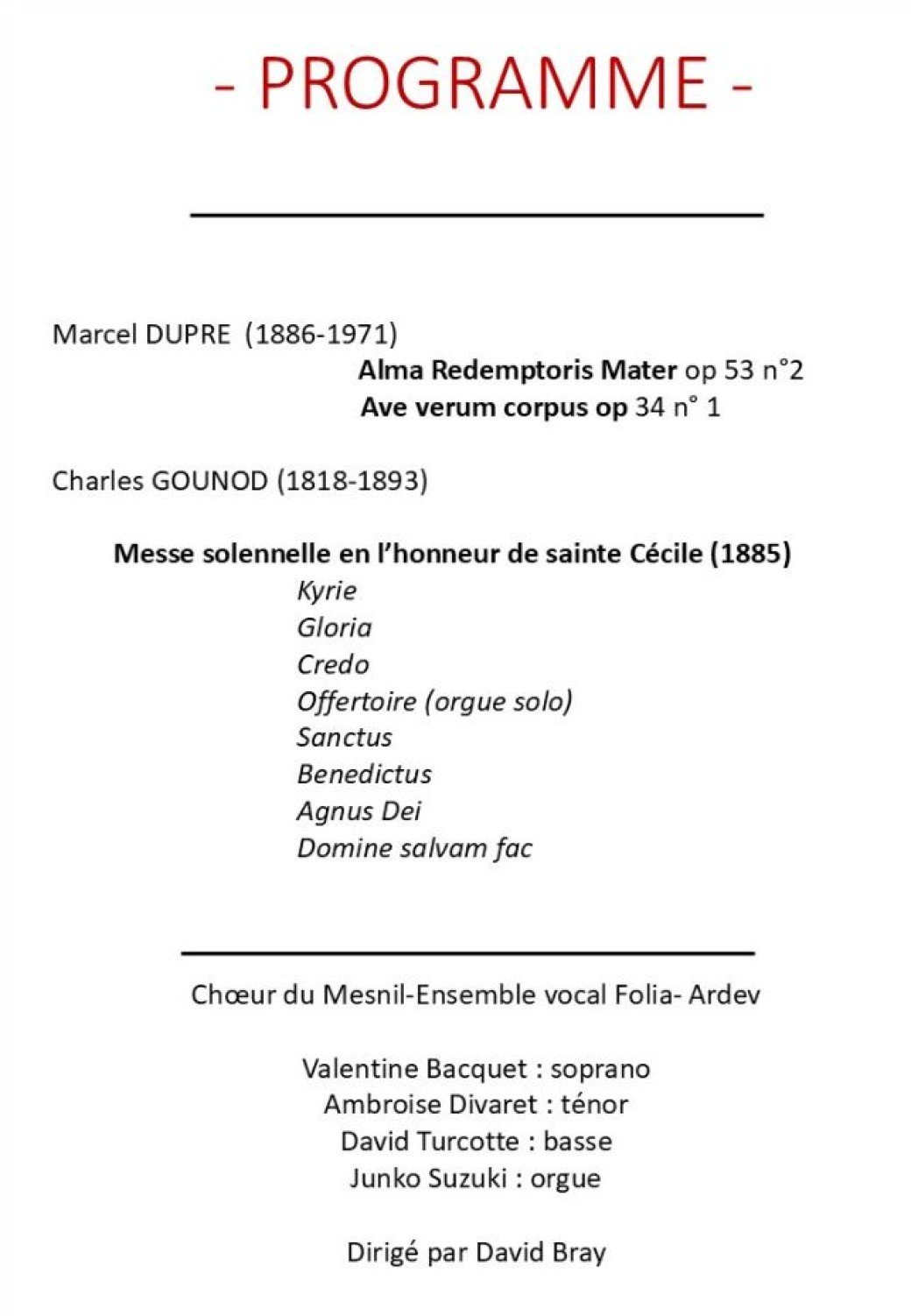 Pour rappeler ce moment, l'œuvre "la Messe de Sainte-Cécile" sera présentée le lendemain du jour anniversaire de sa création le 22 novembre, il y a 170 ans. Ce jour est celui de la fête de Sainte Cécile, patronne de la musique et des musiciens.