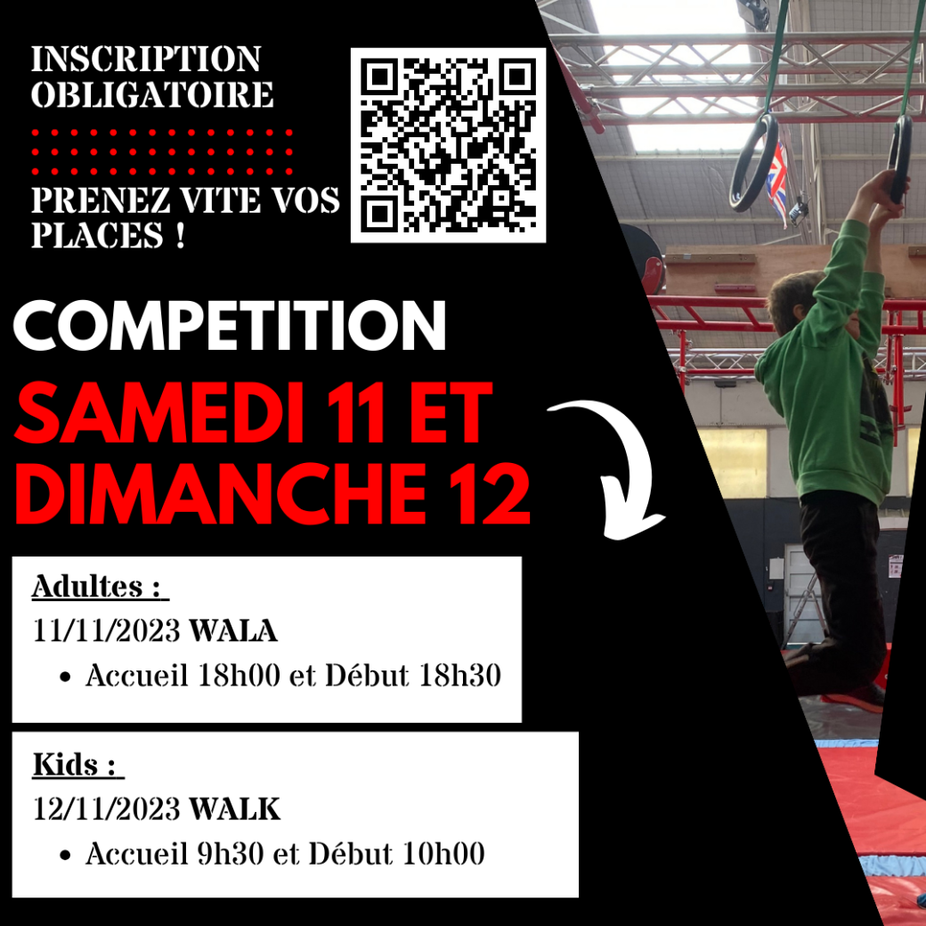 Reservations on : https://www.billetweb.fr/competition-nov-23-wal -- Compétition mensuelle de Warrior Adventure Lyon ! Samedi 11 novembre (Accueil à 18h00) : Compétition Adulte Dimanche 12 novembre (Accueil à 9h30) : Compétition Kids