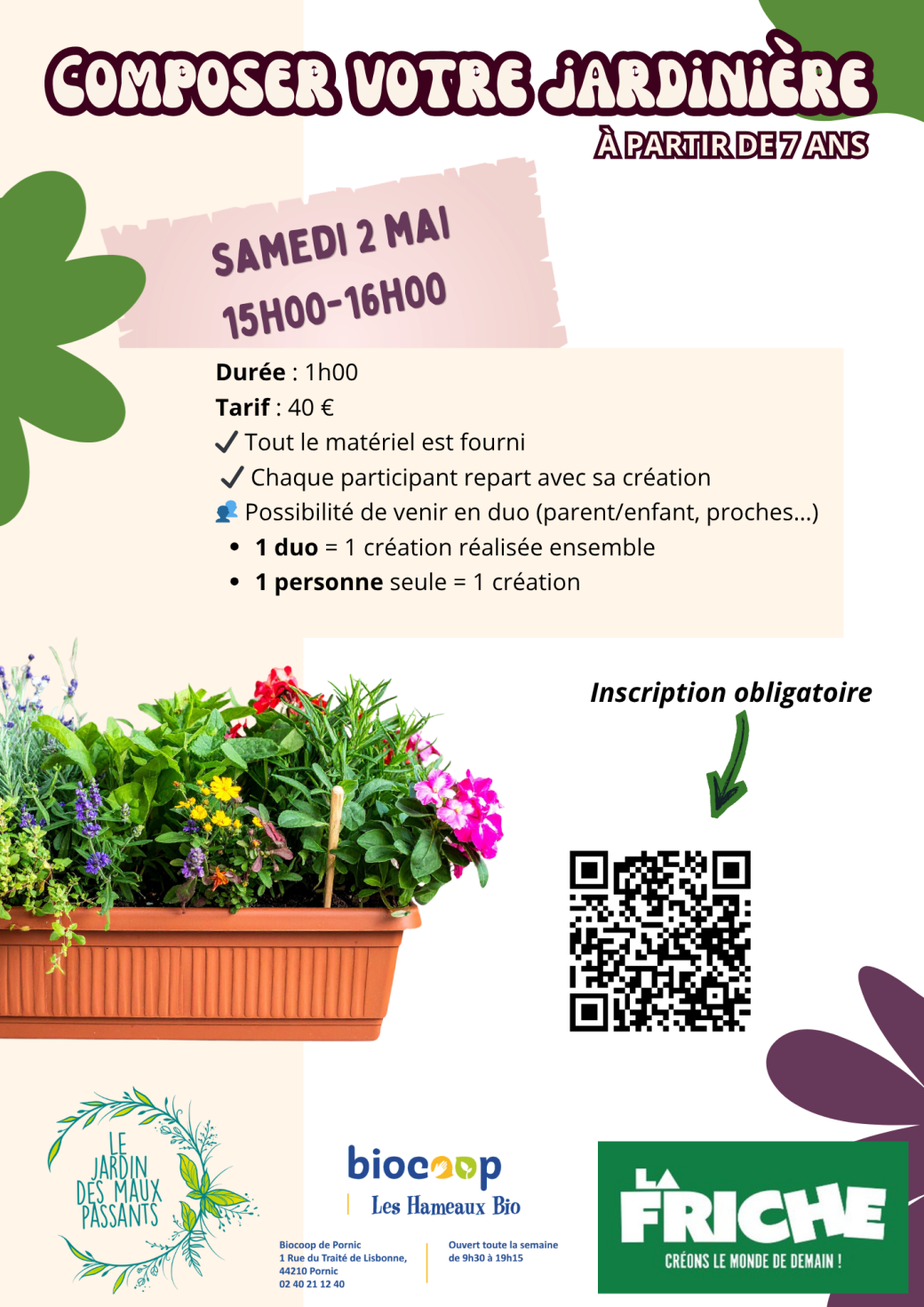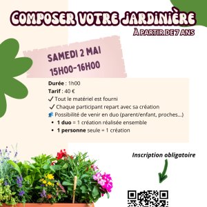 2026-05-02 15:00:002026-05-02 16:00:00Europe/ParisComposer votre jardinièreReservations on : https://lejardindesmauxpassants.com/