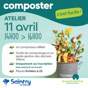 Dans le cadre de sa politique de gestion durable des déchets, la Ville de Saintry-sur-Seine, en partenariat avec Grand Paris Sud, vous propose deux ateliers gratuits sur le compostage.