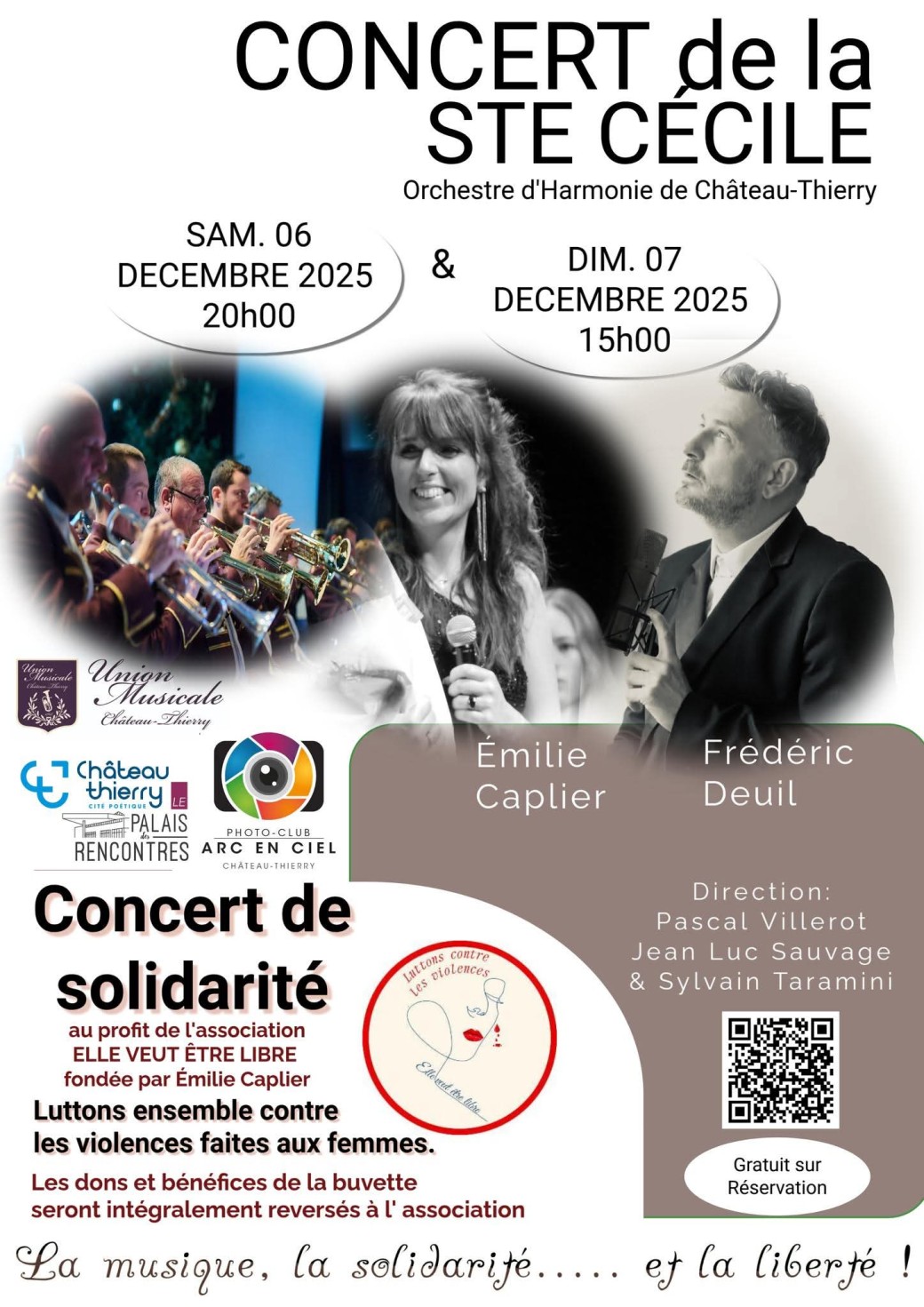 * L’association “Elle veut être libre”, dédiée au soutien des femmes en détresse, nous vous invitons à faire un geste solidaire : l’intégralité des dons récoltés lors de ces représentations sera reversée à l’association.