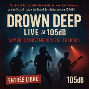 Groupe Post-Grunge du Grand Est, Drown Deep mêle puissance brute, mélodies sombres et émotion à fleur de peau.