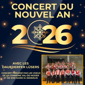 2026-01-11 15:00:002026-01-11 17:30:00Europe/ParisConcert du Nouvel avec les Dauederfer Lüsers Reservations on : https://www.billetweb.fr/concert-du-nouvel-avec-les-dauederfer-lusers