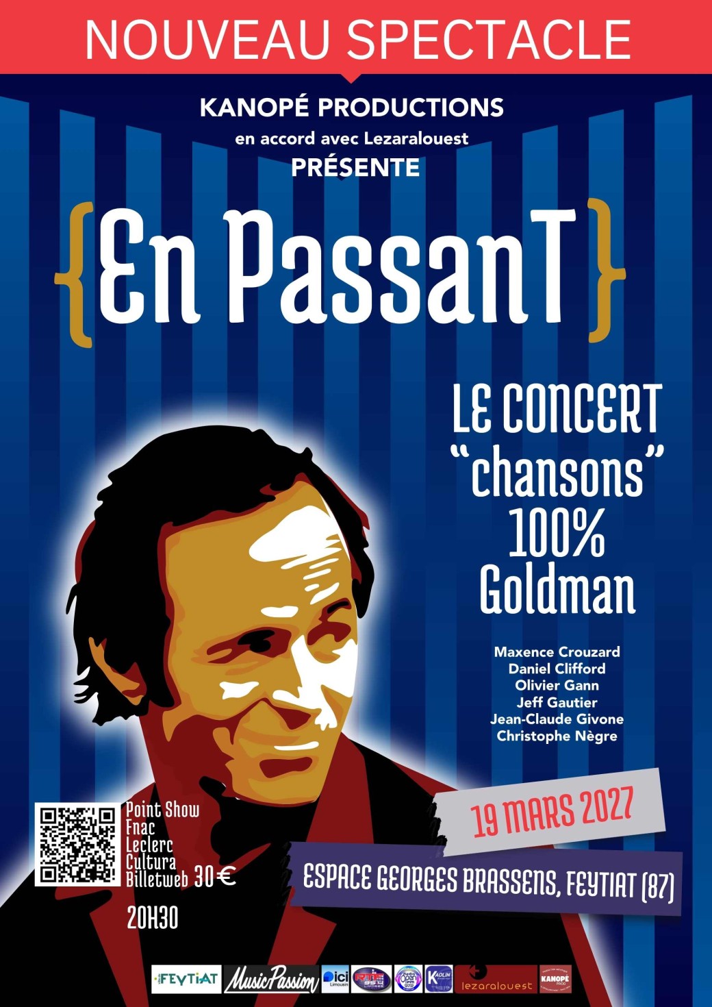 Après 3 ans de tournée non stop dans toute la France avec un passage remarqué à Tahiti, le groupe EN PASSANT repart en tournée avec un tout nouveau Spectacle toujours 100% GOLDMAN.
