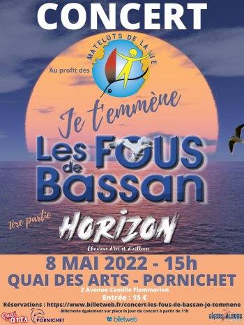 2022-05-08 15:00:00 2022-05-08 18:00:00 Europe/Paris Concert Les Fous de Bassan "Je t'emmène" Reservations on : https://www.billetweb.fr/concert-les-fous-de-bassan-je-temmene -- Quai des Arts, Avenue Camille Flammarion, Pornichet, France ASS DECL MATELOTS DE LA VIE