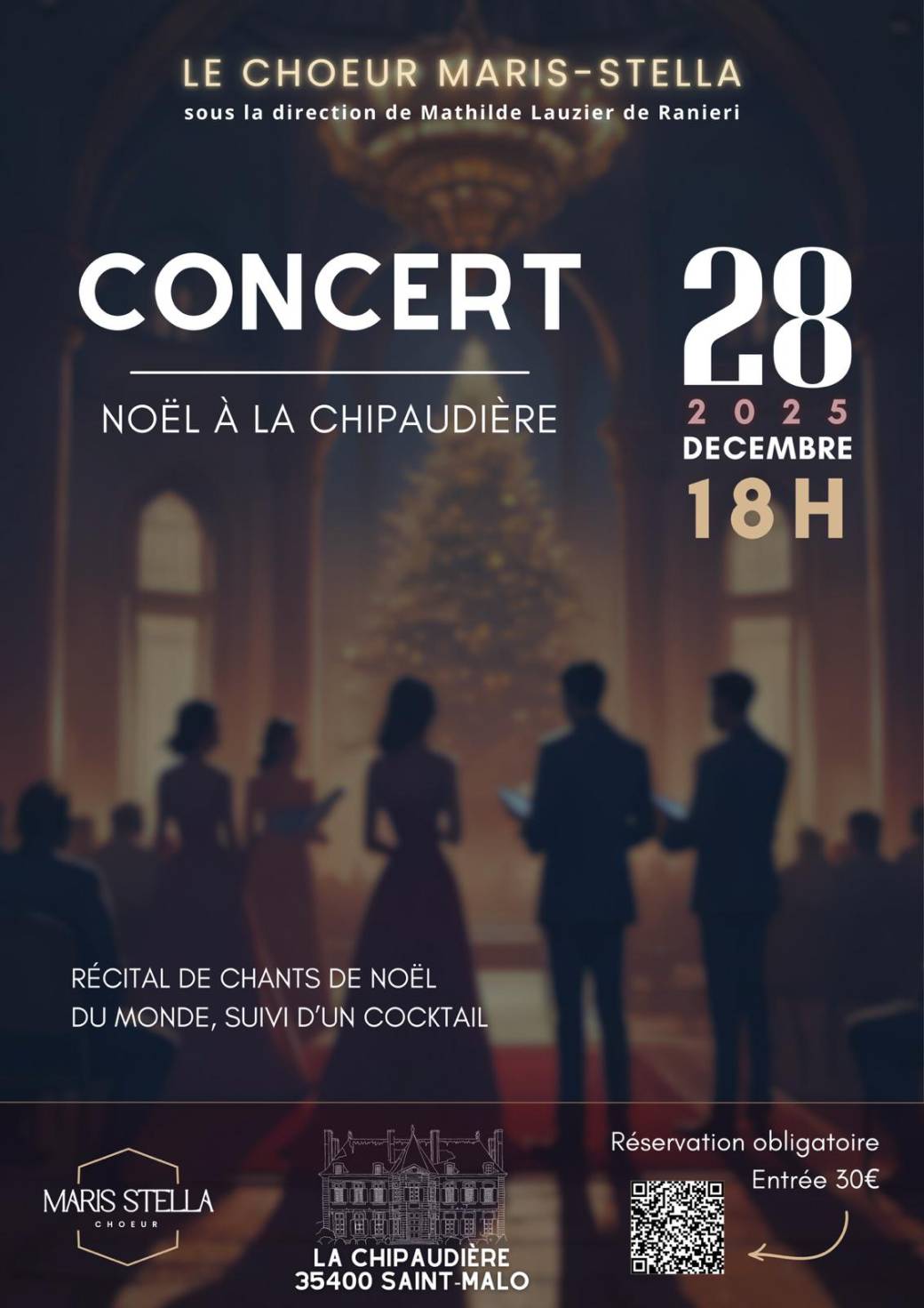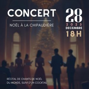2025-12-28 18:00:002025-12-28 21:00:00Europe/Paris"NOËL à La Chipaudière" - CONCERT suivi d'un COCKTAIL - 28 Décembre 18HReservations on : https://www.billetweb.fr/concert-noel-a-la-chipaudiere