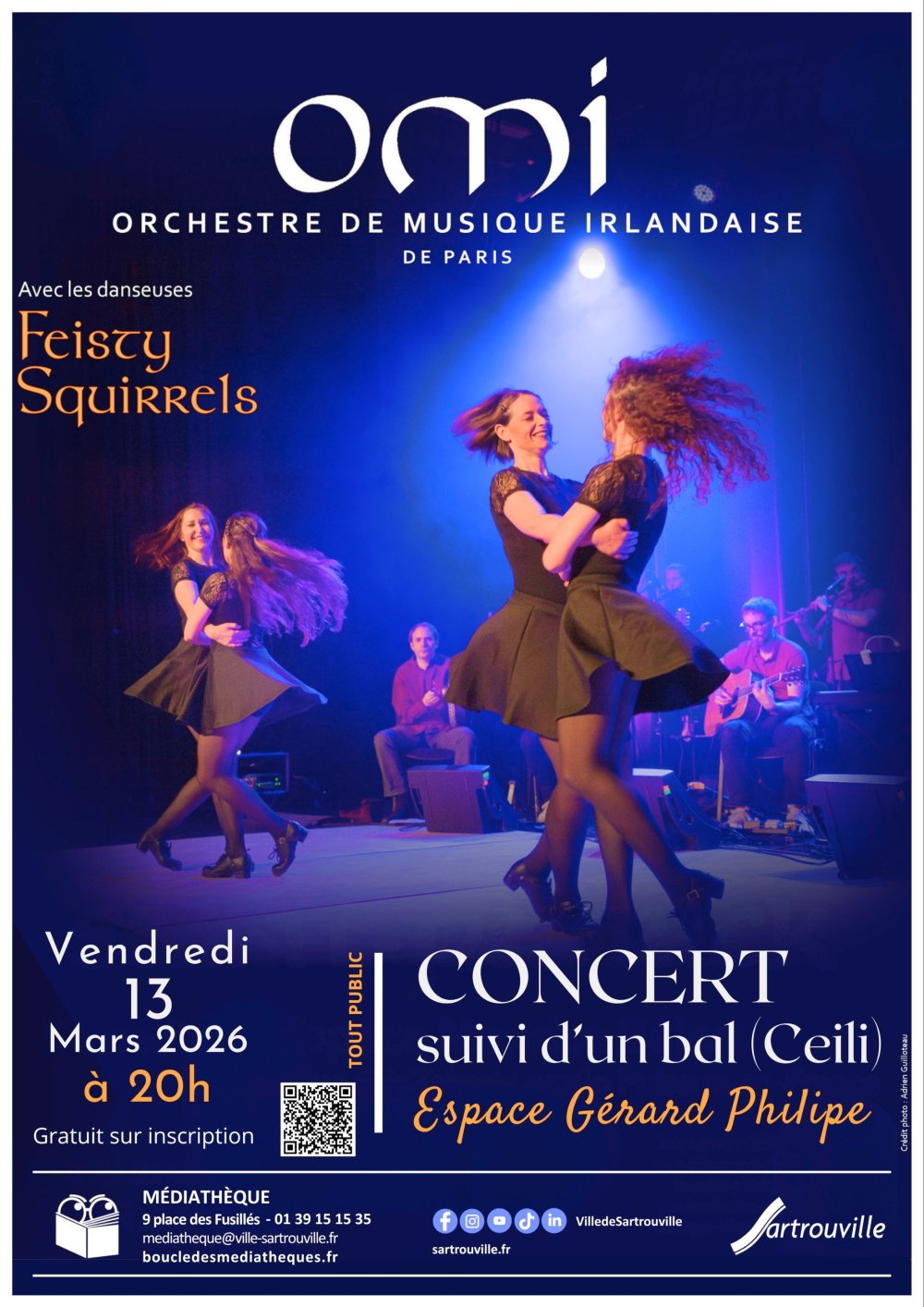 Un concert de musique traditionnelle par l'Orchestre de Musique Irlandaise de Paris animé par Patrick, maître à danser passionné.