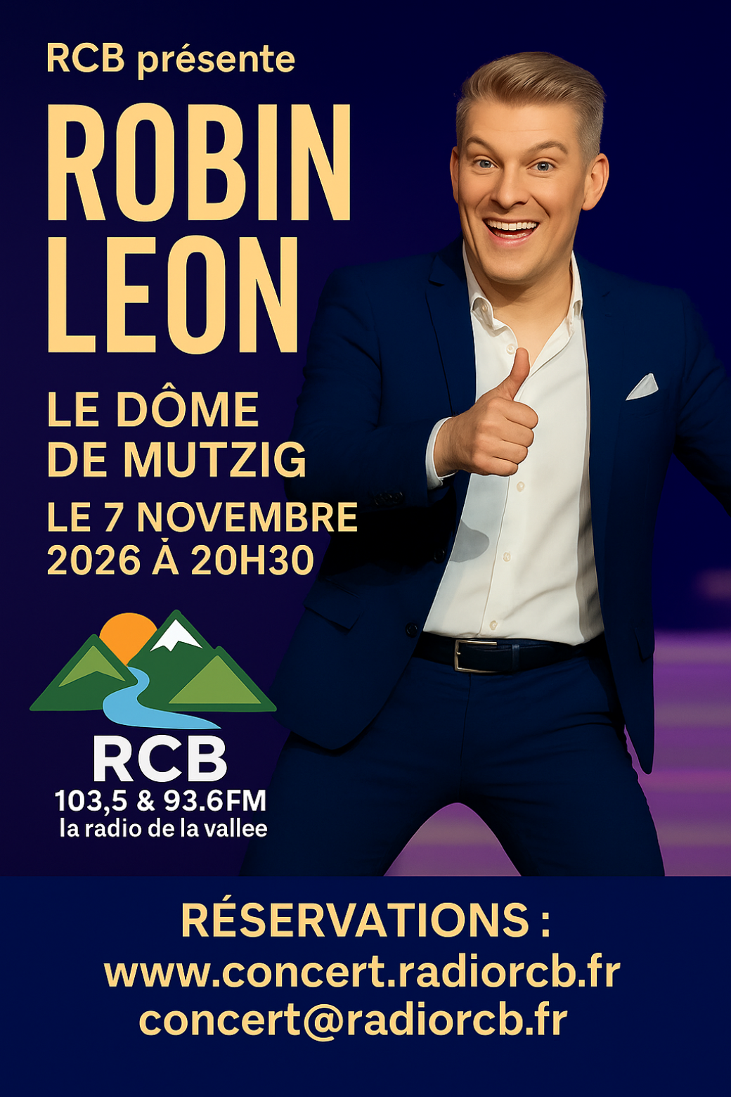 Préparez-vous pour une soirée inoubliable : Robin Léon sera en concert le samedi 7 novembre 2026 au Dôme de Mutzig pour un show unique qui s’annonce festif, chaleureux et fédérateur ! Avec son énergie débordante, son sourire irrésistible et ses titres populaires, il promet de faire danser, chanter et vibrer toutes les générations.