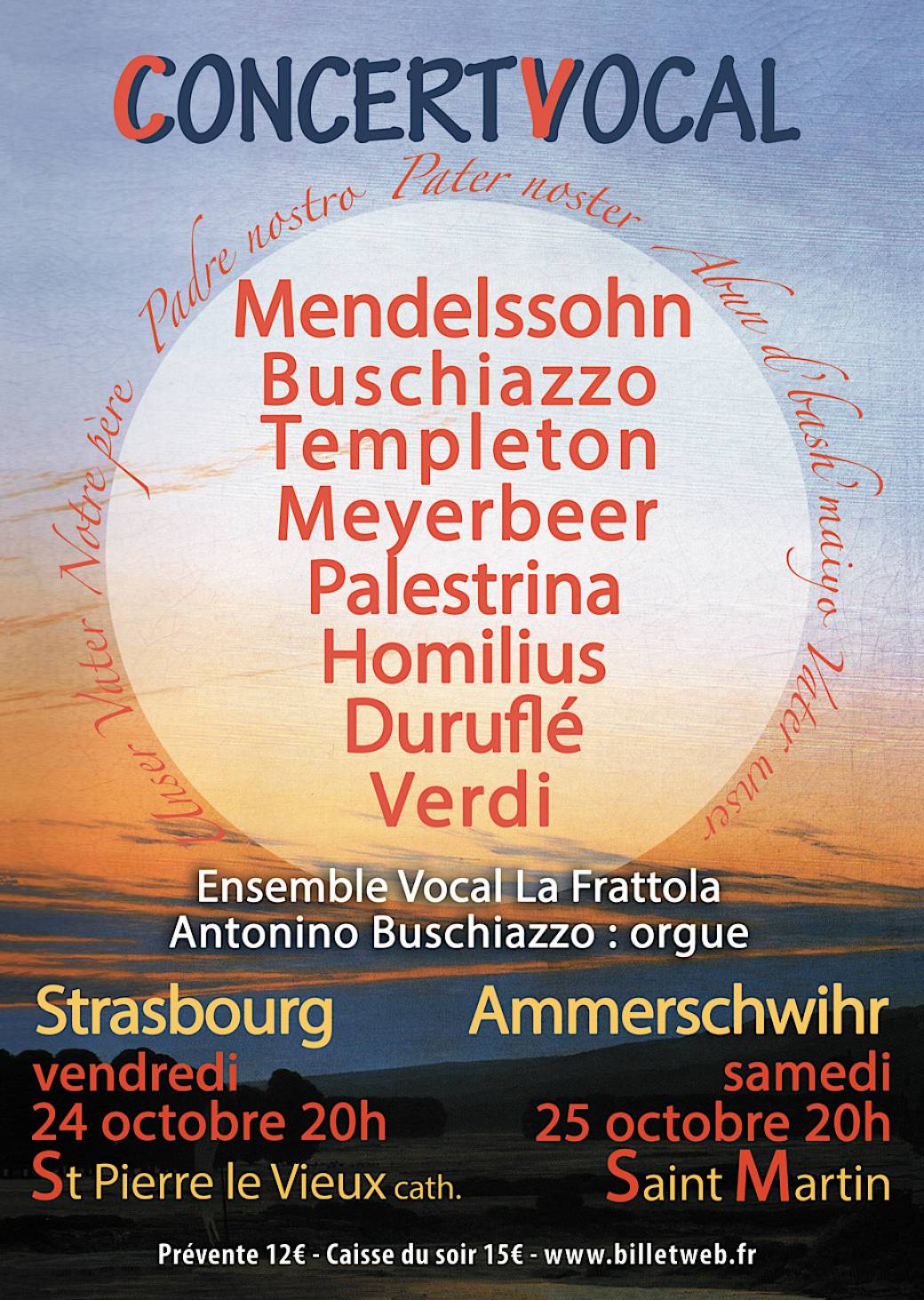 L’ensemble vocal La Frattola et Antonino Buschiazzo vous proposent un programme original entièrement construit sur des œuvres faisant appel au texte du « Notre Père ».
