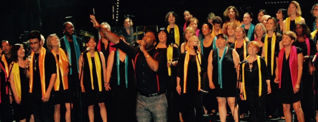 Concert de Gospel avec le Nice Gospel Group en première partie et le So Nice Gospel en deuxième partie de soirée avec 65 choristes dirigés par Latonius.Black Box, Pont René Coty, Nice, FranceNice Gospel Group