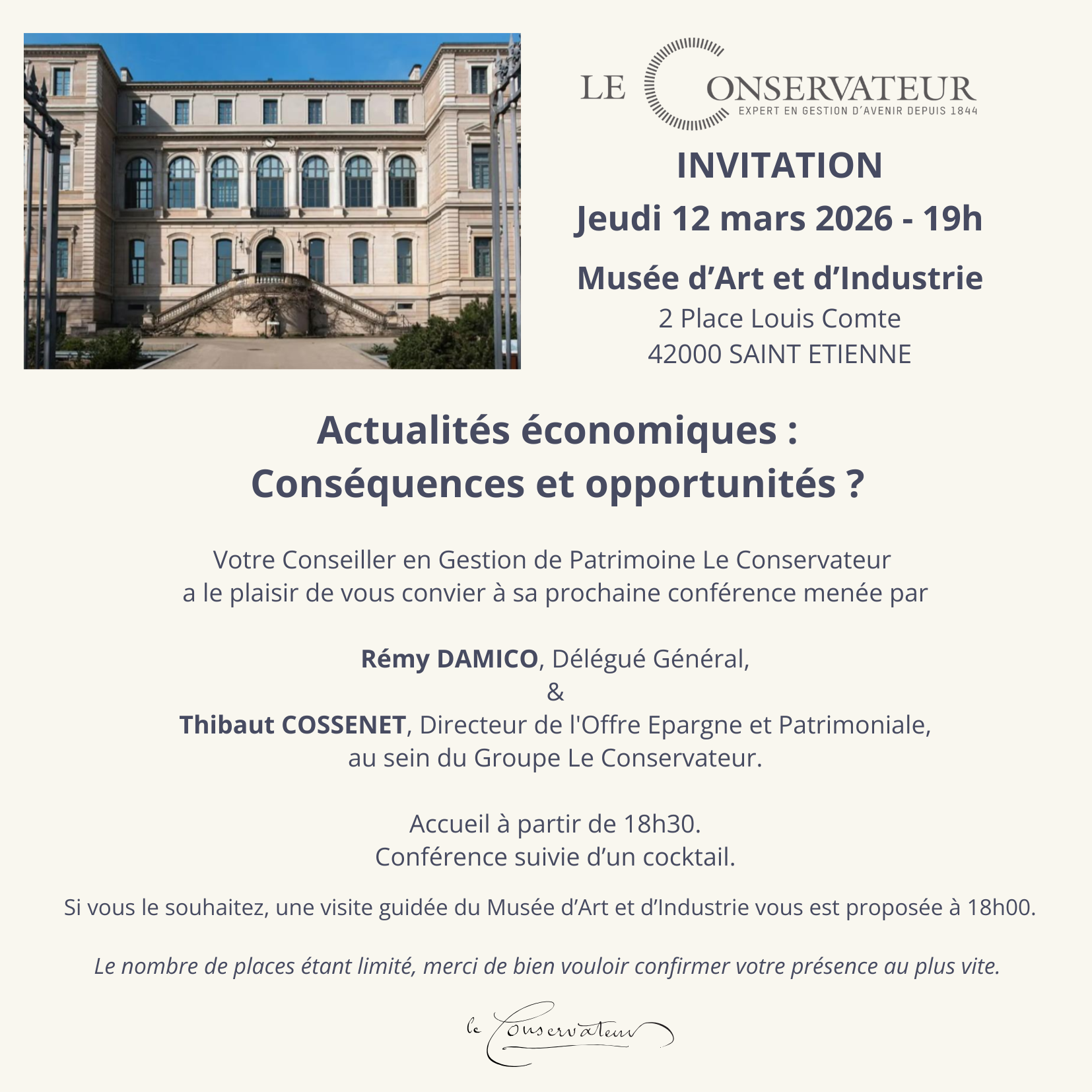 2026-03-12 19:00:002026-03-12 19:00:00Europe/ParisConférence "Actualités économiques : conséquences et opportunités"Reservations on : https://www.billetweb.fr/conference-actualites-economiques-consequences-et-opportunites1