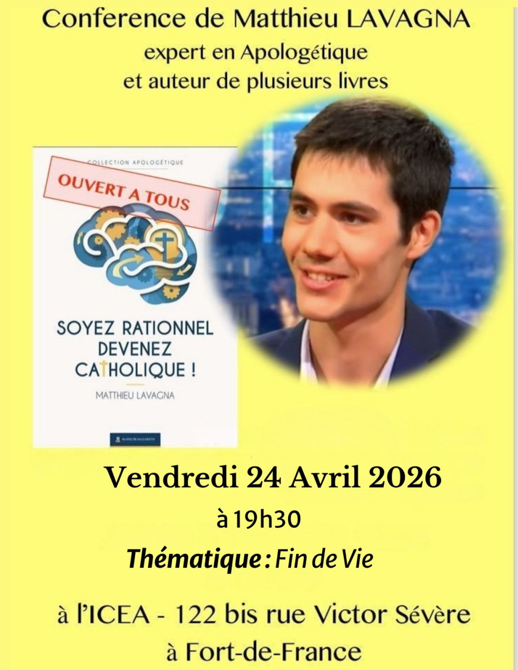 2026-04-24 19:30:002026-04-24 20:30:00America/MartiniqueConférence de Matthieu LAVAGNA : Fin de vie & BioéthiqueReservations on : https://www.billetweb.fr/conference-de-matthieu-lavagna-fin-de-vie-bioethique