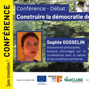 Troisième opus du projet "Les pieds dans l'eau", après les rencontres avec Charlène Descollonges puis Freddy Rey, cette nouvelle conférence-débat avec Sophie Gosselin, Docteure en philosophie, vous est proposée le vendredi 17 avril à 18h à Malaucène (84), et intitulée : "Construire la démocratie de l'eau".