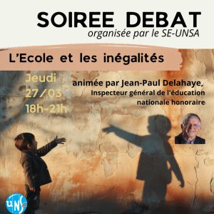 L'UNSA Education vous invite à sa soirée débat animée par Jean Paul Delahaye, auteur du livre "l'école n'est pas faite pour les pauvres".