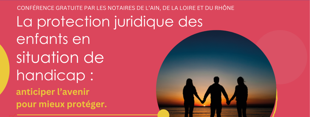 La Chambre Interdépartementale des notaires de la Cour d’appel de Lyon organise une conférence sur le thème « La protection juridique des enfants en situation de handicap : anticiper l'avenir pour mieux protéger » à destination des familles, le 5 décembre 2024, à l’Amphi du siège du Crédit Agricole, à Saint-Étienne à 18 h.