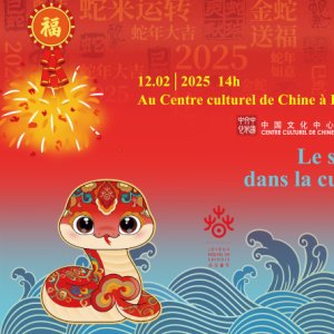 En Chine, le serpent est un animal symbolique qui se rencontre dès les premiers témoignages de l’art et de l’écriture chinois et continue de marquer la culture aujourd’hui. Dans les inscriptions sur os d’animaux et carapaces de tortue (jiaguwen) et les inscriptions sur bronze (jinwen) datant de l’époque antique (dynasties Xia, Shang et Zhou, 3e-1er millénaires av. J.-C.), il se présente sous une forme ondulée, simple ou double, qui vient du serpent naturel et à laquelle le dragon, symbole des empereurs, emprunte sa forme. Il est présent dans la mythologie chinoise, qu’on connaît à travers le Livre des monts et des mers ( Shanhaijing), avec le mythe de Fu Xi et Nü Wa, deux personnages à tête d’humain et corps de serpent qui sont entrelacés et sont à l’origine de la civilisation et de l’humanité. Il a donné naissance aussi à des légendes variées dont la plus célèbre est celle du Serpent Blanc, l’histoire d’un serpent qui se transforme en femme, tombe amoureuse d’un jeune homme et lui donne un fils. De tous ces témoignages il ressort que le serpent est un animal situé entre deux mondes, qui incarne la transformation, la force de la vie, la fertilité et la prospérité. C’est pourquoi on lui rend un culte dans toute l’Asie orientale. Dans le zodiaque chinois, il se situe juste après le signe du Dragon et est perçu comme un « petit dragon ».