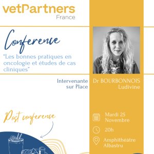 Nous vous proposons la semaine prochaine, une nouvelle conférence qui aura pour sujet “Les bonnes pratiques en oncologie et études de cas cliniques”, présentée par le Dr Ludivine BOURBONNOIS, experte en oncologie des animaux de compagnie.