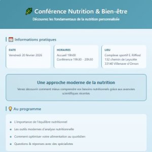 Reservations on : https://www.billetweb.fr/conference-nutrition-bien-tre1 --