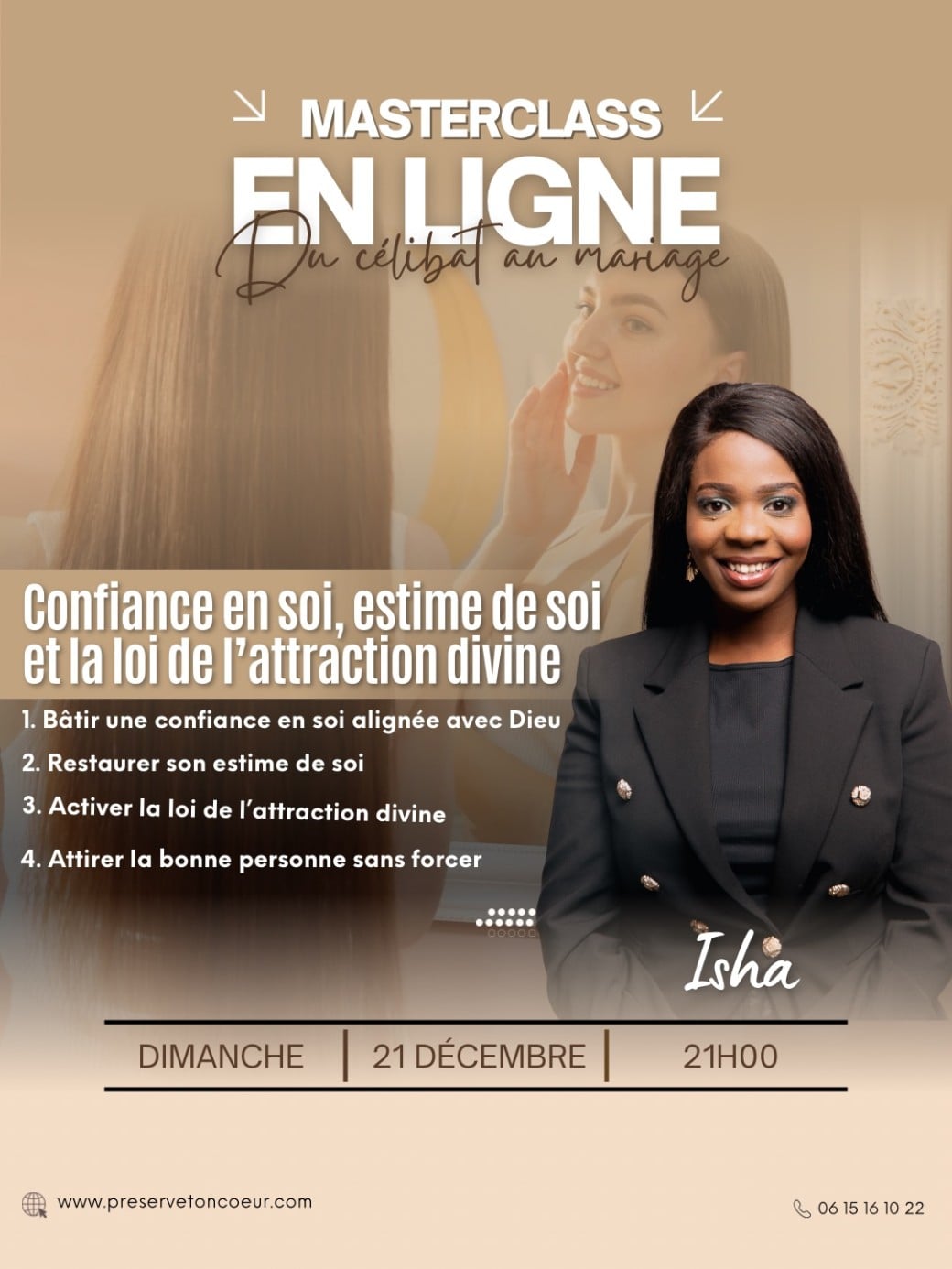 Cette masterclass met l’accent sur l’importance de devenir intérieurement stable, d’avoir une identité affermie et de recevoir des clés pratiques pour développer une confiance en soi et une estime de soi solides, concrètes et durables.
