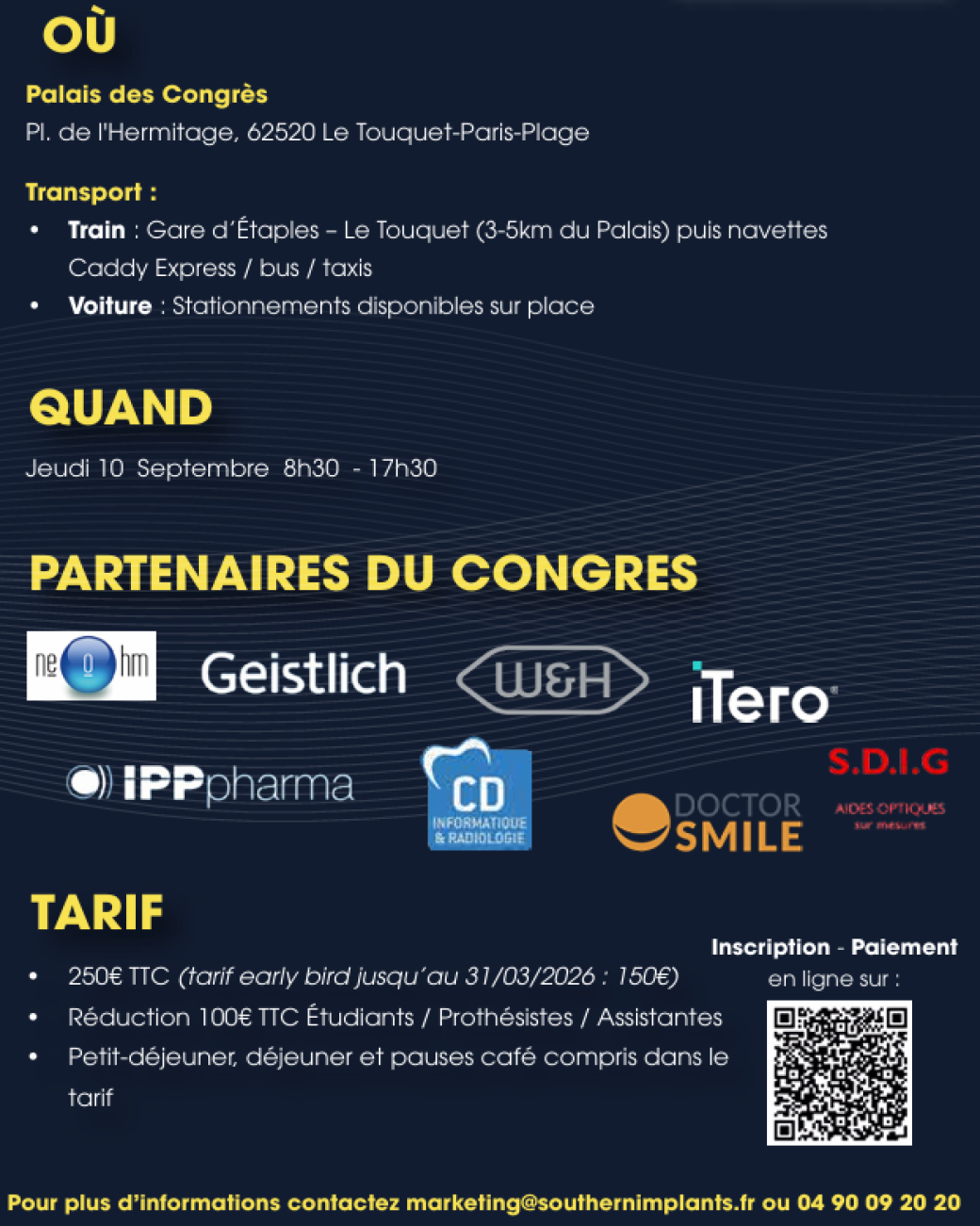 *Avec la participation de partenaires industriels reconnus : Geistlich, W&H, Neohm, IPP Pharma, CDInformatique, Doctor Smile, Itero, SDIG.