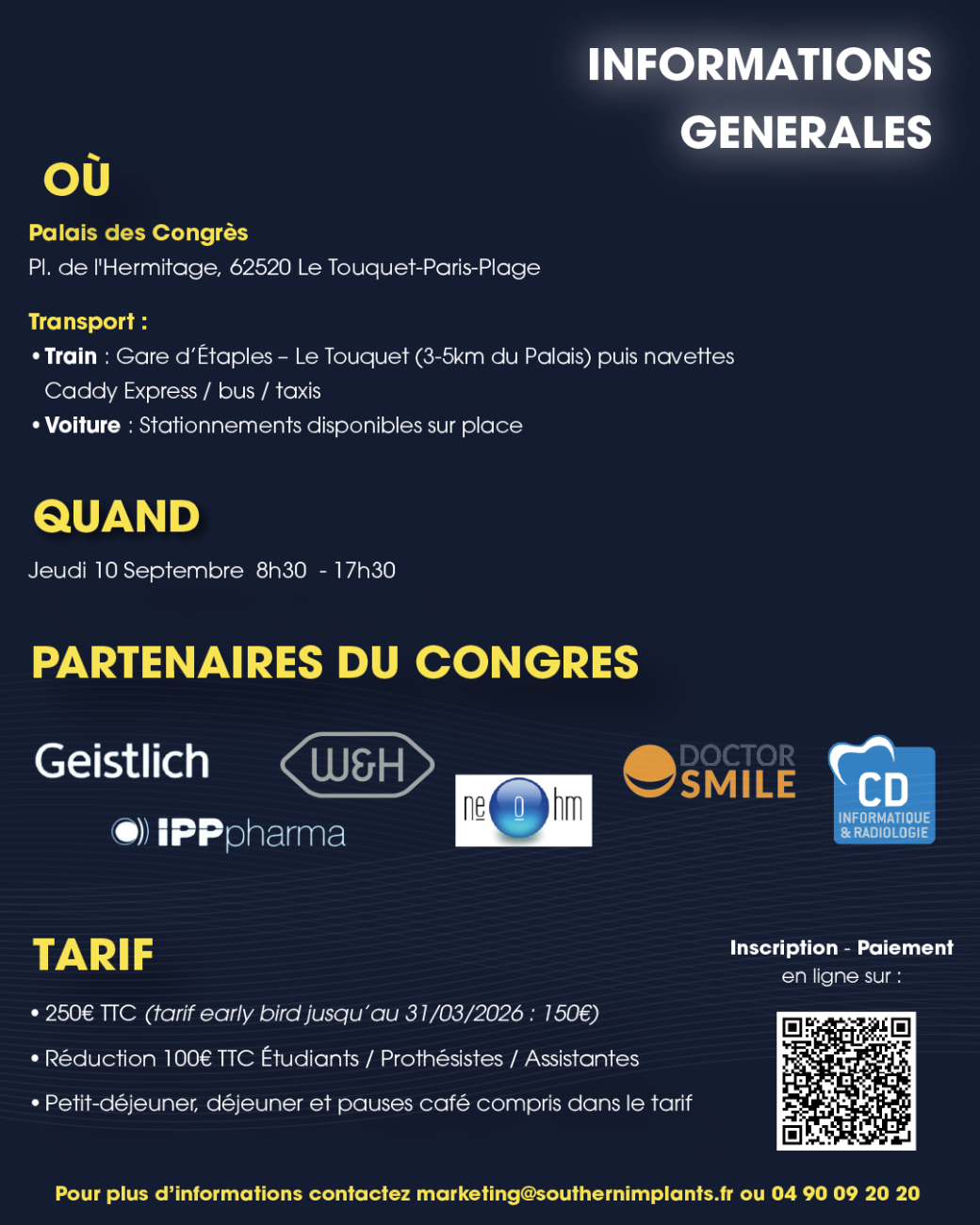 *Avec la participation de partenaires industriels reconnus : Geistlich, W&H, Neohm, IPP Pharma, CDInformatique, Doctor Smile.
