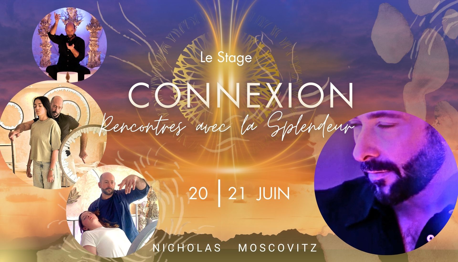 C'est dans les puissantes énergies cosmiques du Solstice d'été que nous aurons la chance de vivre ce stage d'expansion énergétique, de communication et de dialogues avec l'invisible. Nous profiterons de cet alignement des astres célébré depuis des millénaires pour ouvrir nos connexions aux richesses énergétiques au travers de ce prodigieux portail solaire d'accélération.
