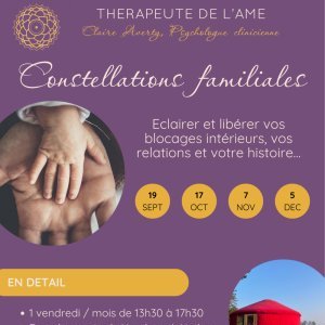 2025-10-17 13:30:00 2025-10-17 17:30:00 Europe/Paris Constellations familiales Reservations on : https://www.billetweb.fr/constellations-familiales64 -- Vous vivez des blessures ou des schémas répétitifs? Une relation douloureuse au présent ou dans votre passé? L'impression de porter un poids qui ne vous appartient pas?   1/2 journée en groupe pour éclairer, comprendre et débloquer une situation dans laquelle vous vous sentez coincé ou démuni, grâce au merveilleux et puissant outil des constellations familiales et systémiques.   Parce que parler ne suffit pas (tellement de patients me disent avoir suivi une thérapie pendant des années où ils n’ont fait que raconter leur histoire, mais que cela n’a rien changé!), les constellations vous permettent d’aller toucher à vos parts blessées inaccessibles qui affectent votre vie, ou d’explorer vos relations et de résoudre ce qui pose problème. En groupe, c’est tout le système autour de cette blessure que nous pouvons mettre en lumière et changer!    Elles se dérouleront dans la magnifique yourte de Youdooo à Nethen.   Vous pouvez demander à faire votre constellation ou choisir de simplement re… Rue de Beaumont 31, Nethen Grez-Doiceau, Belgique Claire Averty