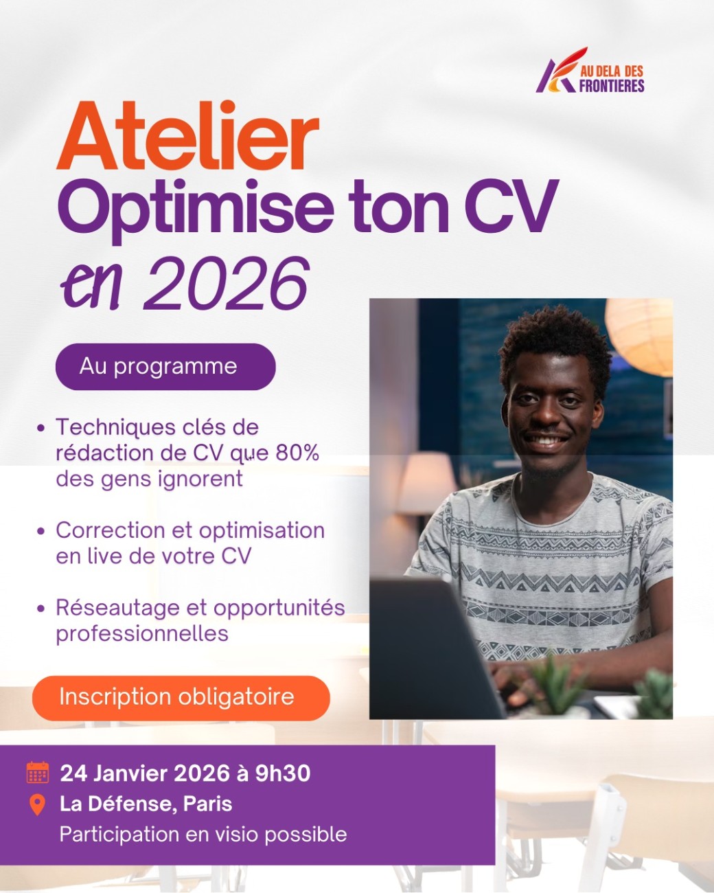 Une session pratique pour créer un CV qui retient l’attention et une lettre qui donne envie de te rencontrer.