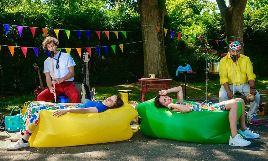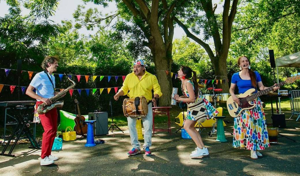 Quatre musiciens latinos et français célèbrent la joie tout au long de la journée, malgré les hauts et les bas, au rythme de la cumbia, du merengue et du reggaeton.
