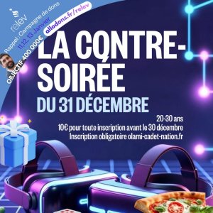 2025-12-31 21:00:00 2025-12-31 23:55:00 Europe/Paris Contre-soirée du 31 décembre Reservations on : https://www.billetweb.fr/contre-soiree-du-31-decembre -- CONTRE-SOIRÉE du 31 décembre Cette année, le 31, c’est avec Olami Cadet Nation ! Une contre-soirée bien différente des autres… Des casques de réalité virtuelle à tester, des dizaines de jeux à découvrir... et évidemment, des pizzas à customizer  Sans pression et sans cliché : une soirée détente et découverte !  Pour les 20-30 ans  10€ pour toute inscription avant le 30 décembre Adresse (Paris) envoyée uniquement aux participants  Entrée sur inscription : olami-cadet-nation. Infos après inscription Olami Cadet