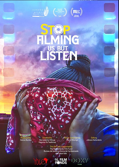 Stop Filming Us But Listen explores the history of colonial representations in the Congo and follows the journey of Congolese filmmaker and journalist Bernadette Vivuya and her fellow local artists as they strive to challenge Western narratives around the city.