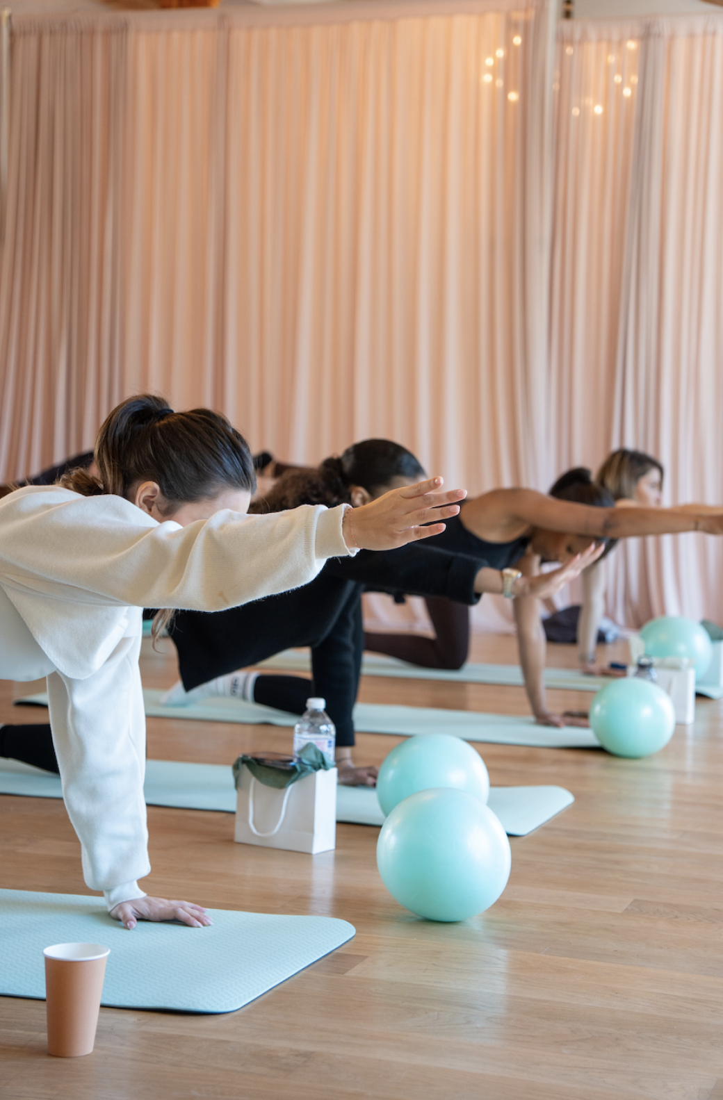 • Cours signature de Pilates Mat : une séance dynamique axée sur le renforcement du centre et la posture. Accessible à tous les niveaux, de débutante à expérimentée, grâce à des adaptations et accessoires.