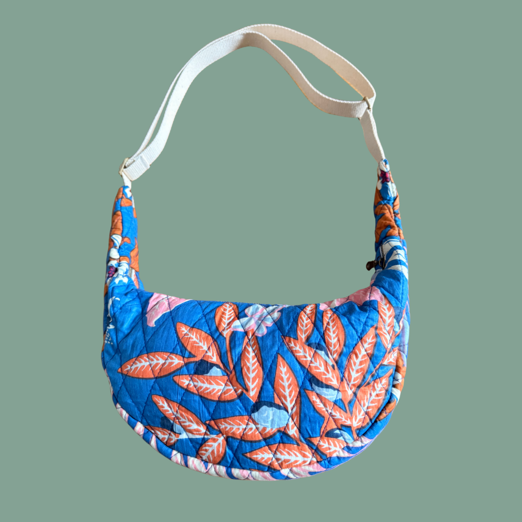 Avec sa forme caractéristique, le sac demi-lune s’est imposé comme le sac tendance du moment. Réalisé en coton indien matelassé, ce modèle n’a pas besoin d’être doublé.