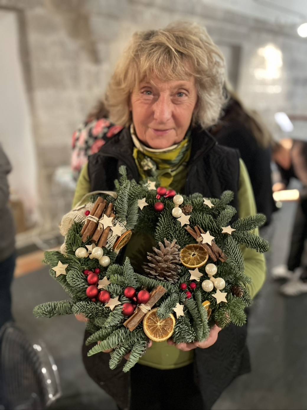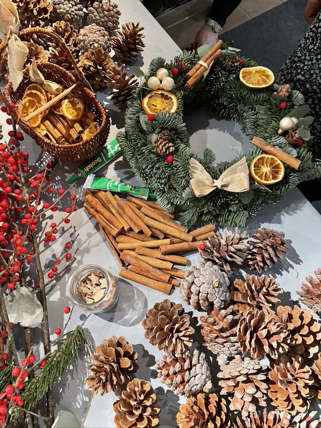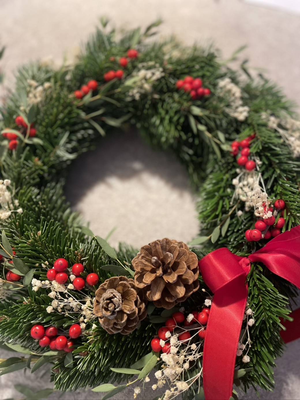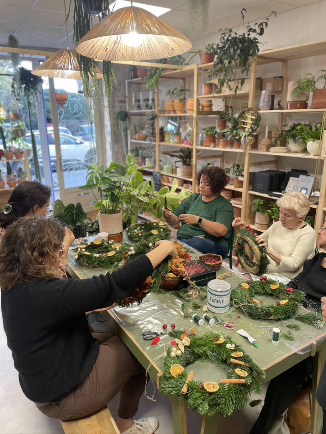 Viens créer une superbe couronne de Noël à suspendre. Une composition de sapin frais à décorer de façon personnel selon un choix varié d'éléments séchés et colorés.